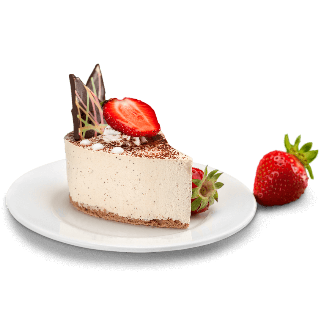 Cheese cake à la vanille avec des fraises fraîches, idéal pour les amateurs de desserts gourmands.