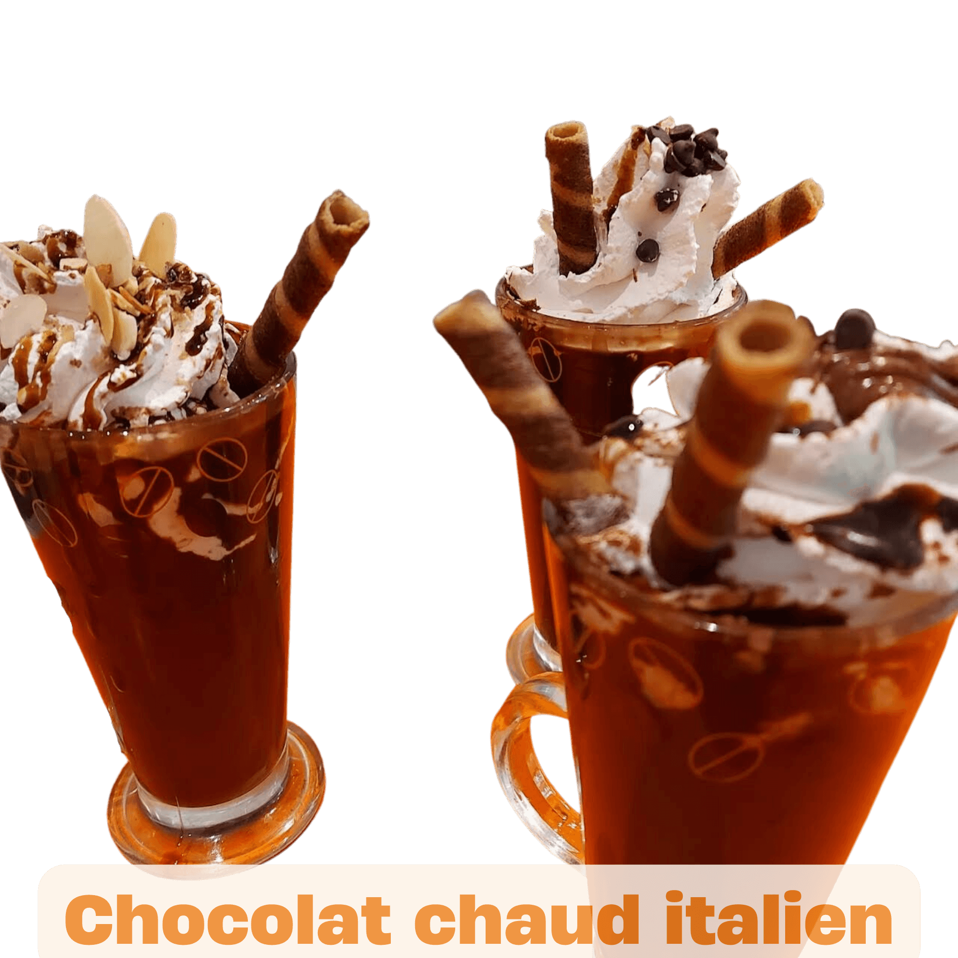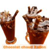 Délicieux chocolat chaud italien garni de crème fouettée et d’amandes.