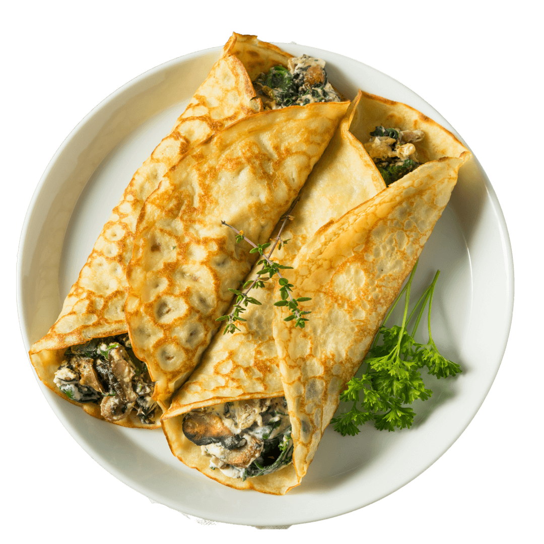 Délicieuse crêpe garnie de champignons et d’herbes fraîches.